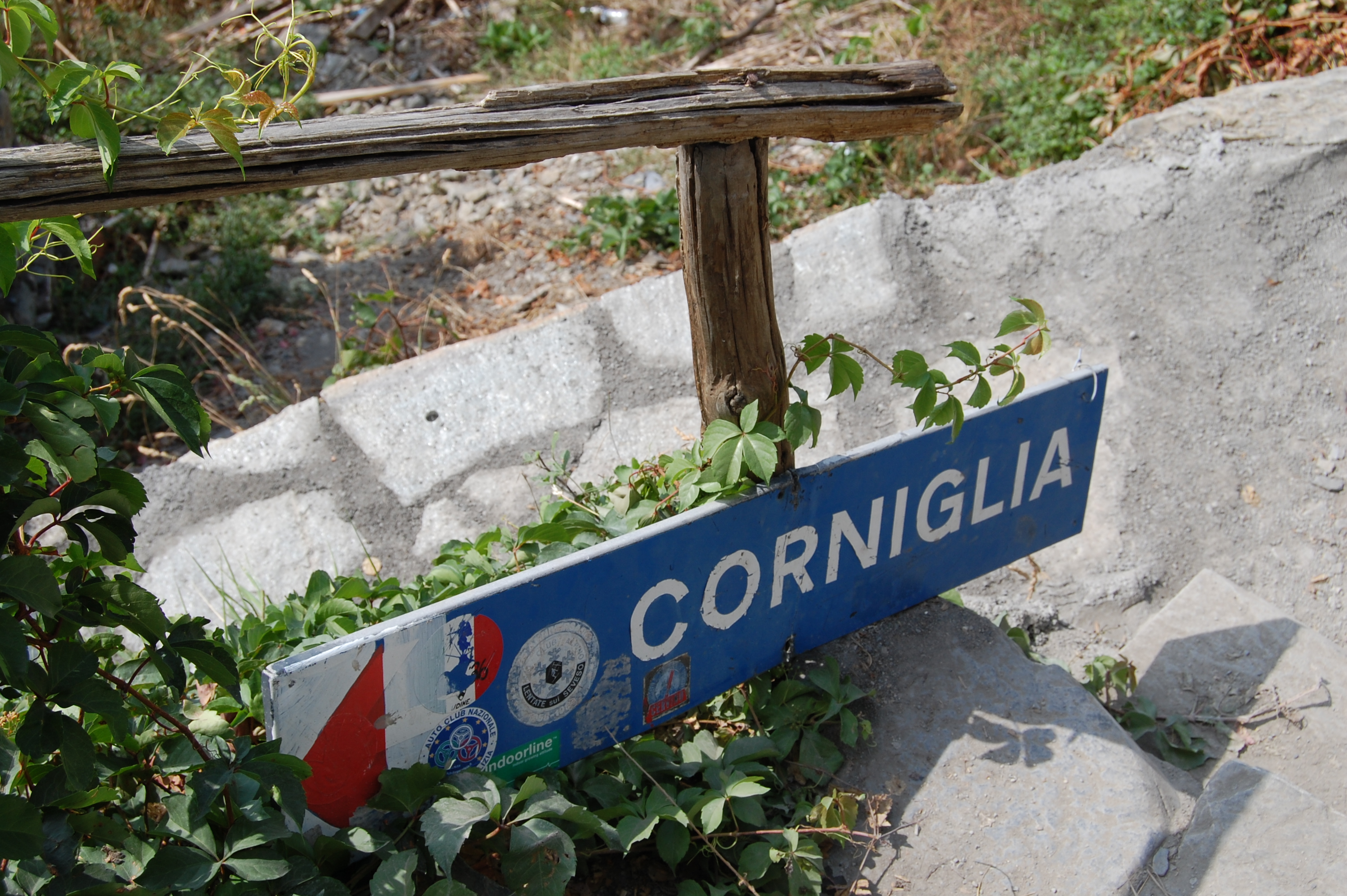 A sign for the next town on the trail in the Cinque Terre, September 2011.