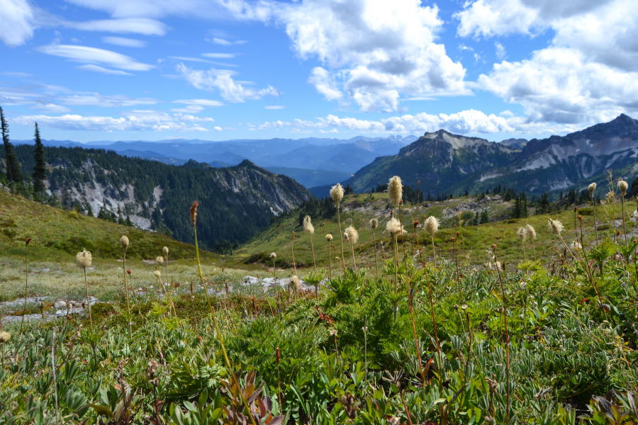 MeadoWatch wildflower hike, take two. Not many flowers this time – everything had peaked already. But we collected our data and still very much enjoyed the landscape. We even caught a few glimpses of the shy Mountain, though it hid behind clouds most of the day.